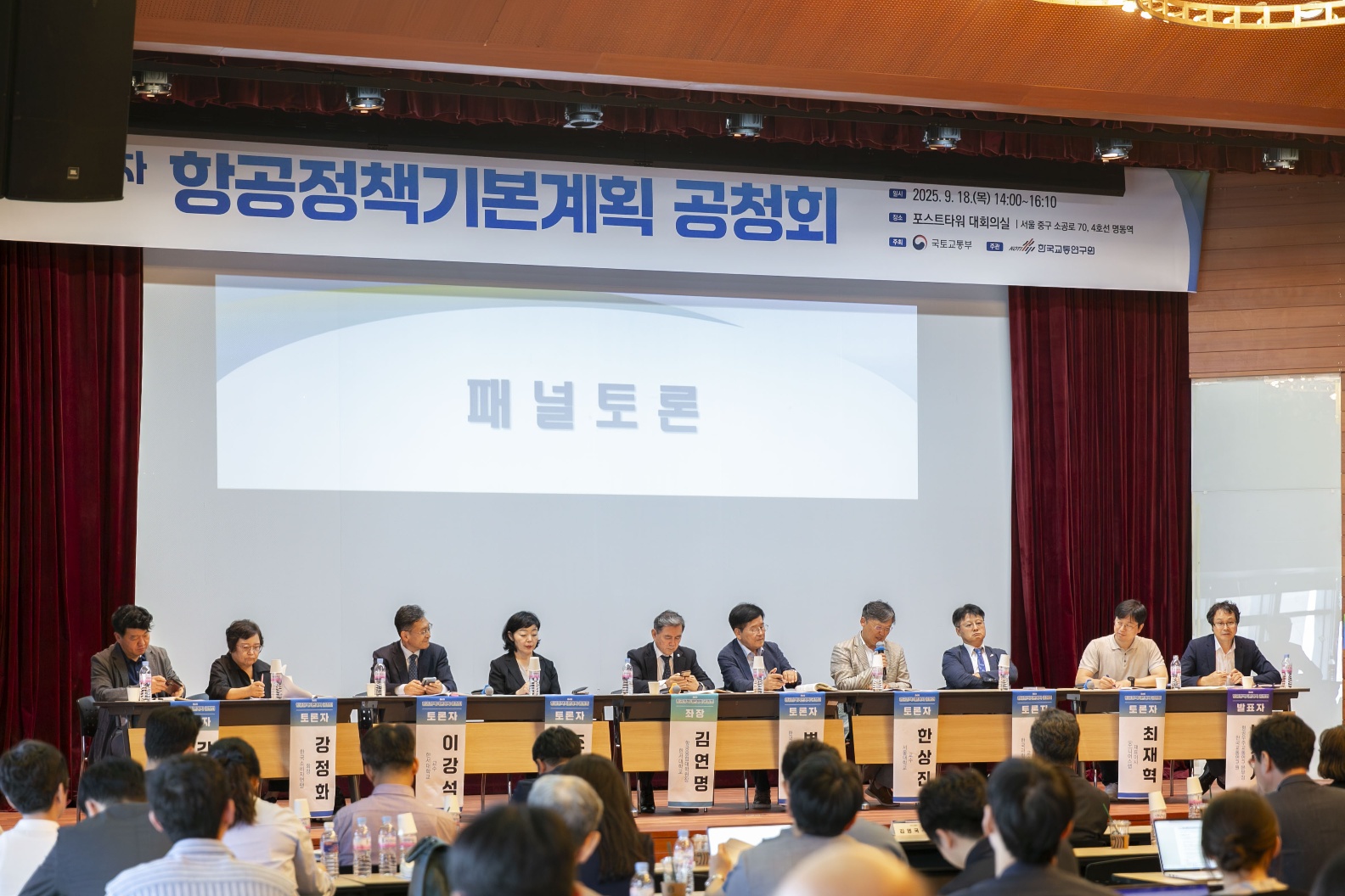 2025.09.18에 열린 항공정책기본계획 공청회에 박진서교수님은 발표자로, 이강석교수님은 토론자로 참여하였습니다.